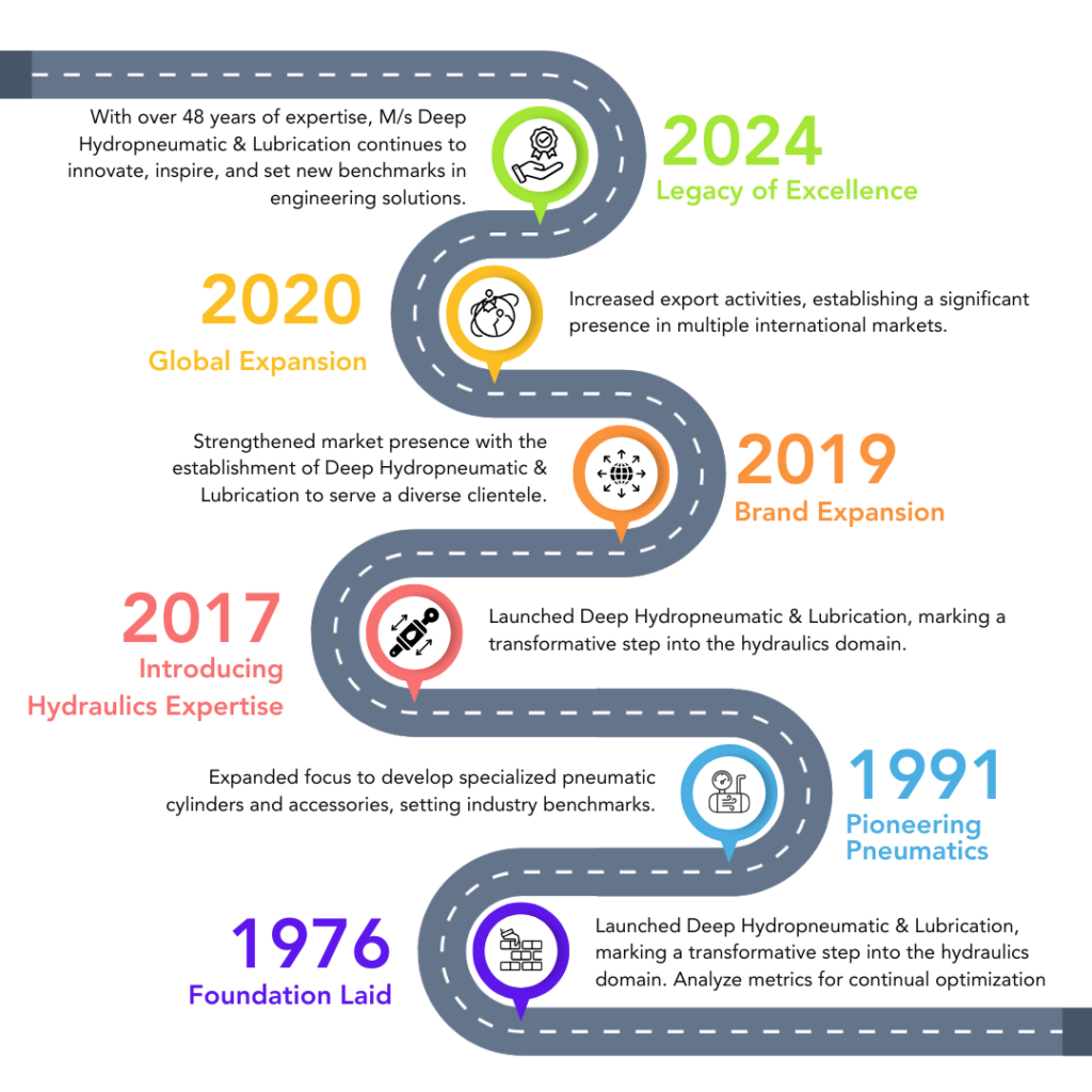 As an ISO 9001:2015-certified organization and member of the Mahratta Chamber of Commerce, Industries, and Agriculture, we are committed to maintaining high standards and customer satisfaction. With four advanced manufacturing plants in India, DHL proudly stands as the “One-stop solution for hydraulic, pneumatic, and lubrication products.” We have been dedicated to excellence since day one!