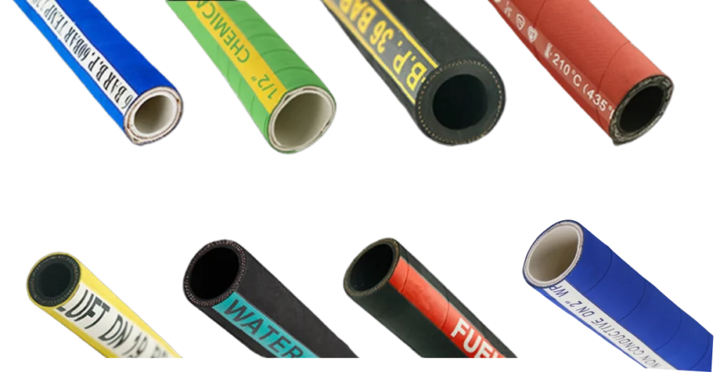 Air Hose, Water Hose, Fuel Hose, Welding Hose, Pressure Washer Hose, Steam Hose, Suction and Discharge Hose, Rubber Oil Hose, Abrasive Sandblasting Hose, Automotive Hose, LPG Gas Hose, Multipurpose Hose, Welding hose